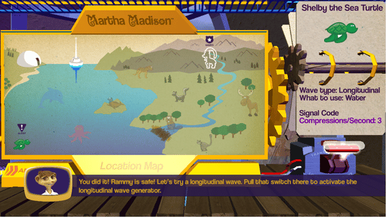 Waves to the rescue! As a storm approaches, Martha Madison: Waves challenges players to use the science of waves to rescue Martha’s animal friends. Working as virtual scientists, players use a powerful machine to create transverse waves along ropes and longitudinal waves through water. They adjust the amplitude and manipulate the energy level to save Martha’s friends. Martha Madison, meerkat scientist and student mentor, is on-hand to guide students as they embark on science-filled, problem-solving adventures that bring complex concepts to life.