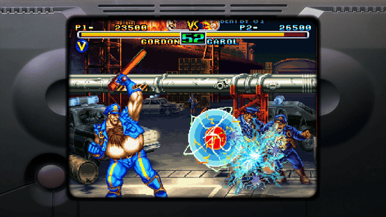 FU'UN SUPER COMBO is a compilation containing two SNK fighting games from the NEOGEO era, 'SAVAGE REIGN' and 'KIZUNA ENCOUNTER'. The first game is a weapons fighter with a unique and diverse cast of characters, and is distinct in its utilization of two fighting planes which the player can traverse between during battle. The second title in this compilation drops the plane-switching gameplay but adds tag battle mechanics, including the ability to team up with a friend for co-op action! Use all the abilities at your disposal to defeat King Leo and claim victory in the Battle of the Beast God tournament!