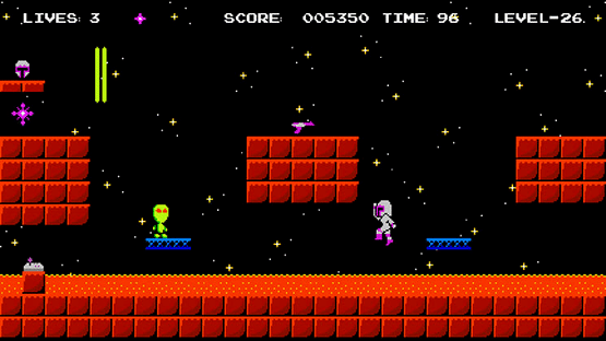 You are Jade Hunter, an intergalactic treasure hunter. While traveling past an uncharted planet, your ship was shot down. Now Jade is an intruder, an alien, on this uncharted planet, and is being hunted down. Your mission is to survive and escape the planet! Travel through 128 levels! Avoid and defeat enemies to survive! Collect powers to ensure your survival! Do you have what it takes to survive in Space Hunted? Or will you be hunted down?