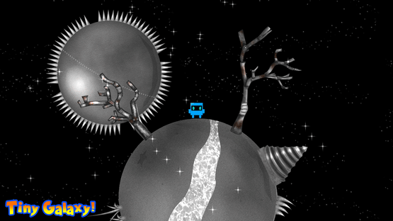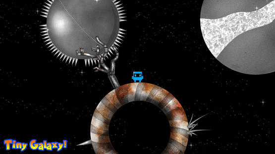 Tiny Galaxy is an action platformer. You play as a blue square, Orion, as you race through the "tiny galaxy", jumping from planet to planet to try and retrieve your stolen headphones.