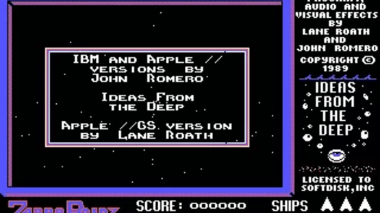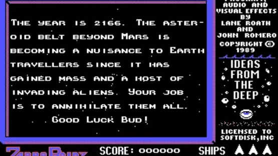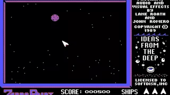 In Zappa Roidz you fly around in a space ship and you have to shoot all the asteroids and aliens you encounter. When you shoot a large asteroid it will break into smaller asteroids that you also have to shoot. On a map you can see where all the asteroids and aliens are. Your space ship can be destroyed by colliding with other objects. When you have lost all your space ships the game is over.