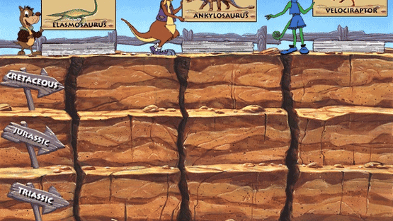I Can Be a Dinosaur Finder is an educational game developed by Cloud Nine Entertainment and published by Macmillan Digital Publishing USA in 1997. Join Addie the kangaroo, Katie the chameleon and Rufus the dog as they help paleontologist Dr. Rock Hound dig up fossils and piece together dinosaur skeletons. Take a dino-digging break with games involving jigsaws, matching pairs, painting, and feeding hungry prehistoric creatures.