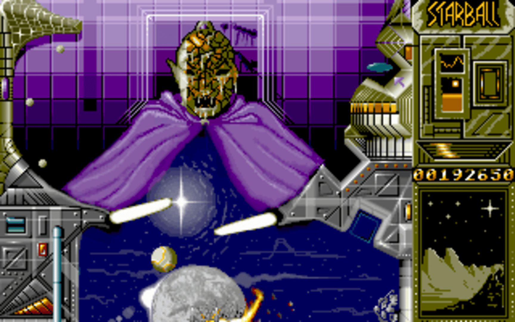 Starball PC is an odd pinball game based largely on the game called Spaceball (named Starball in the original German release) on the Atari ST. While this game is a typical pinball, it also present many bizarre, innovative concepts. It consists of one huge table, which in turn consists of 3 main parts, each with its own set of flippers. Should your ball fall between the flippers it will drop to a lower level until finally you're at the bottom, and then you lose a life. Each part of the table has its own quirks, secrets and purpose (for example, in the middle section you build a spaceship and have to protect it from two missile-firing guns on the right. There are also hidden, or secret, stages in the game: one is an "egg" with four parts you have to crack, another is a breakout clone only with pinball mechanics and another is a bizarre "Doom pinball". There's also the ultra-secret (and very hard to get to) Llama pinball game.