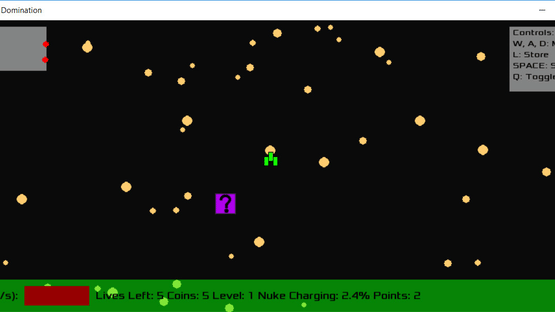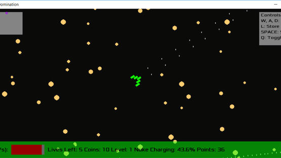 In this game, you must take down an empire of evil, corrupt space ships, and restore peace to the universe. To do this, you must take out as many ships as you can, as well as defeat the emperor, who is hiding out in an other dimension, in an arena, top down shooter-style game made entirely by 1 person. Good luck, and may the stars align in your favor!