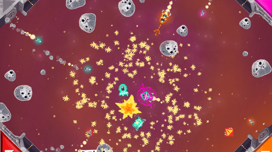 Bearbushkas is a local multiplayer 2D arcade game for iPad with hand-drawn cartoon graphics. Up to 4 players try to mark their opponents to be chased by homing missiles while at the same time trying to shake off the missiles chasing them. Extra levels add the additional challenges of navigating through an asteroid field or avoiding giant lasers that can be activated by shooting at them.