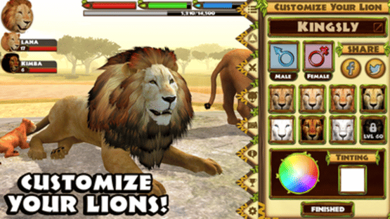 Jump into a brand new adventure as a ferocious Lion! Brave a dangerous new world to claim your place at the top of the food chain! Recruit, raise, and customize your lions, hunt down prey to feed your pride, and battle for your life against fierce bosses like the deadly trio of Hyenas! Download the Ultimate Lion Simulator today while it's 50% OFF for a very limited time! Brand New Features REALISTIC SIMULATOR You'll need to maintain your health, hunger, thirst, and energy if you're going to survive in the wilderness! EPIC FIGHTS Wield razor sharp claws and a spine-tingling roar to strike fear into the heart of your foes! Deliver the killing blow by leaping through the air, hitting critical touch-based targets, and pouncing on your enemy! New touch-based commands let you order your pride to surround and attack enemies! Hunt at night with the new Night Vision! BUILD YOUR LION PRIDE Dominate other lions and recruit them to your pride! Play as any lion in your pride and create a powerful family of predators! Every lion now has health, stats, and rankings providing significantly more immersive gameplay! RAISE LION CUBS Breed baby lion cubs that will grow into powerful members of your pride! Carry them around in your mouth and even play as them to hunt tiny critters! CUSTOMIZE YOUR LIONS Choose your lion's name, gender, fur pattern, and even tint them any color of the rainbow to make the pride of your dreams! Reach Alpha status to unlock the heroic furs that show off your prowess as a lion! LEVEL UP YOUR LIONS Gain experience by defeating dangerous enemies, scavenging carcasses, and completing missions! Level up your lions to increase their health and attack damage, earn points to upgrade your lion’s statistics, and increase the size of your pride! EARN STAT POINTS Stat Points can be used to provide bonus’s to traits like Health, Critical Attack Chance, Run Speed, and much more! UPGRADEABLE BUFFS Buff Points can be used to upgrade your Roar and Growl Buffs, which create temporary Stat Boosting auras around your lion when active! UNLOCKABLE SKILLS Skill Points unlock and upgrade special abilities for your lions. Upgrade “Enhanced Senses” to go into a rage mode that doubles run and attack speed! RAGDOLL PHYSICS Your prey now realistically dangles from your mouth as you carry them! Clamp your jaws around the carcass of larger prey and drag them into a secluded area to chow down! DYNAMIC WEATHER AND DAY/NIGHT CYCLE Procedural weather system with unique storms, clouds, sunrise, sunset and celestial movement! MASSIVE REALISTIC 3D ENVIRONMENT Rule over an environment so big we had to create three unique dens for your lions to live in! Track your prey down in the vast grassy plains of the Golden Savannah, brave the dangerous Elephant Boneyard, or explore the rocky hills of the Stone Oasis! 25 UNIQUE SPECIES Hunt down animals like hyena, gazelle, impala, elephant, rhinoceros, snake, fish, flamingo, stork, mice, rat, crocodile, african dog, rabbit, water buffalo, wildebeest, giraffe, cheetah and of course lion! HD NEXT-GEN GRAPHICS From the thick mane and piercing eyes of your lion to the decaying bones of the Elephant Boneyard, everything looks so real you will forget you’re playing a game! OPTIONAL BLOOD EFFECTS If you are of age or have your parents permission, turn on the BRAND NEW blood effects for added combat ferocity! GLUTEN-FREE PROMISE With all of our games you will always get the full game with no ads or additional purchases! Download the Ultimate Lion Simulator to experience the exciting life of the most dominant predator in the Animal Kingdom, the fierce Lion! If you liked living as a Lion then you'll love our other animal simulators! Download our Ultimate Wolf Simulator and live a wild life in the forest, check out the Stray Cat Simulator and raise kittens in a crowded city! Give us a shout and let us know what you want to play next! facebook.com/glutenfreegames twitter.com/glutenfreegames