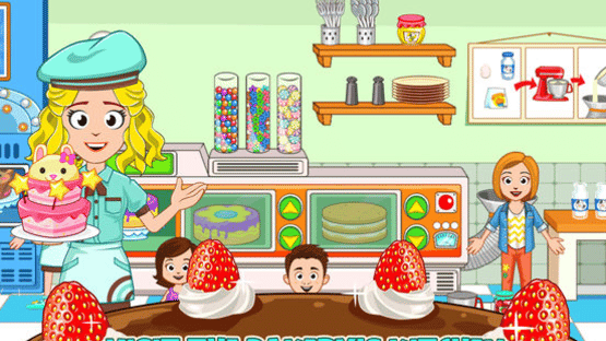 There is a tasty new addition in My Town and it’s time to put your favorite characters to work! In this game, you will get to open your very own My Town : Bakery! There will be customers coming in, so you’d better get baking! Perhaps there is a birthday party coming up and you will need to bake an extra special cake for someone. Maybe someone would like to have a pizza party – grab your delivery driver and make sure it gets there on time! My Town : Bakery has SEVEN new locations to explore! There is the bakery, a pizza shop, a park to hold birthday parties in and even an apartment! No matter where you choose to start your adventure, there are HOURS of fun ahead!