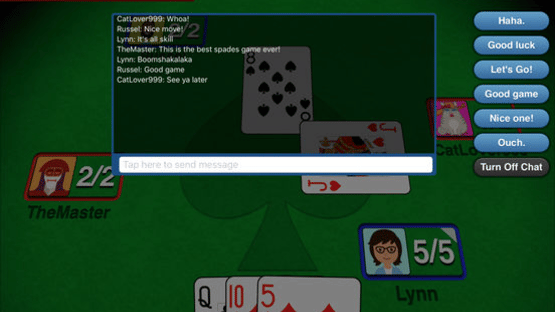 The top-ranked Spades card game with: Live online multiplayer • Achievements • Statistics • Game options • Smart AI opponents • Frequent updates • Lots of happy players • Play Spades now! Spades+ is the premier Spades card game for iPhone and iPad! Spades+ has been in development for years by a dedicated team and has seen countless new features, improvements, and bug fixes. It's fast, stable, always improving, and, above all, fun! Features: * Play Spades online with your friends and everyone else! * Extensive Statistics * Achievements, some easy, some hard, can you get them all? * Challenging and competitive artificial-intelligence opponents * Realistic look and feel * Automatic game saving, just in case you get a call right before you achieve your blind nil bid * Simple tutorial to help beginners get in the game fast * Game options What players are saying ***** "Superb! Very well programmed. Excellent and challenging for every phase of the game!" ***** "Love this game! It's an awesome app!" ***** "Best card game interface for iPad. This is a great game that features pleasing high-def graphics that look especially good on the iPad screen. The deal and trick pickup animations enhance the game playing experience. Card games are simple, but they don't have to be dull and this one is fun without resorting to cheesy animated 'characters'..." ***** "Awesome. Love it! stimulating beautiful graphics, challenging. well done." ***** "Great!! I love this game!! I play it all the time! Highly recommend!" ***** "Downloaded this after I began to teach my kids to play spades for Family Night. Thought it couldn't hurt to brush up my skills! I find myself playing this for hours! Great app." ***** "LOVE THIS GAME! I play everyday!" ***** "Hooked. If you like spades, this is a great game. Plays like the real thing." ***** "My favorite game!" ***** "Addicting. Great fun!"