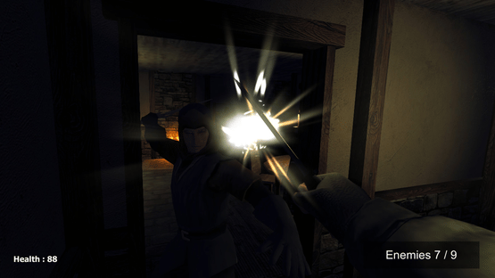In this first person game, you must free all places from thieves and invasor knights using your weapons. Don't forget to block your enemy attacks when possible, it is essential for your survival. When attacking get them from behind or hit the head to get an instant kill.