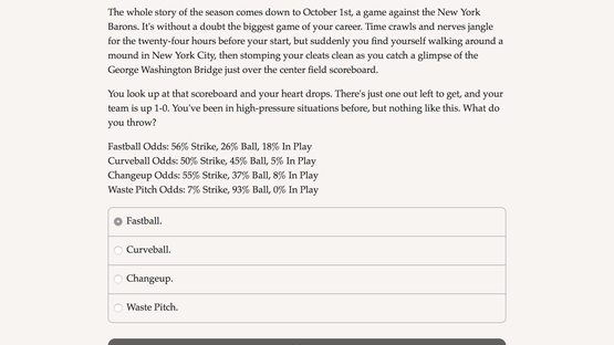 Grab your glove, it's time to pitch your way to the top of the major leagues! Throw fastballs, curveballs, and sliders to take home a pennant!