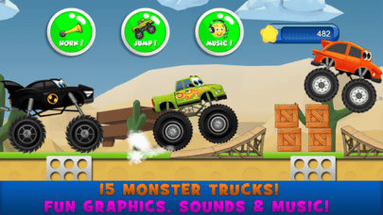 Monster Truck Racing Game for young kids and toddlers! get Ready, Set, GO! If your kids love all things monster trucks, Then they will love this game! Monster Trucks racing game for young kids and toddlers! Designed for young Children and toddlers between ages 2 to 8 years old, Simple controls to drive the monster trucks along the course. the truck never flips ensuring your child always gets to the finish line! Race against other trucks, Which slow down when they are ahead, to give your child the best chance of winning each race! Fun big buttons to Jump, Beep the horn and change the music track for lots of fun sounds. Crush the cars along the course in the monster machines, Collect stars, Fireworks and balloon popping are at the end of each level to give more excitement to the kids playing. There is 4 mini games included. Balloon Pop Memory Cards Puzzles Coloring pages With 15 cool looking monster trucks across 42 levels to blaze across, will create hours of fun for your toddlers. Monster Trucks Kids Game helps your child understand the educational mechanics of using mobile and tablet devices. with puzzles, memory card and heaps of fun racing action. Features: * 15 Monster Trucks to choose from * 42 Levels to play * Fun Cartoon HD graphics * 5 different kids music sound tracks for the child to switch between. * Cute Monster trucks, engines, horns + much more vibrant sounds * Balloon pop game & Fireworks at the end of each race. * Mini Games such as Puzzles, Coloring pages, Memory Cards & Balloon Pop + much more. If you're having any problems with this app, or would like any updates/enhancements, feel free to contact us at [email protected]. We would love to hear from you as we are committed to updating all our games and apps for the best possible user experience.