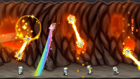 Jetpack Joyride is a 2011 side-scrolling endless runner/action video game created by Chief Creative Officer Luke Muscat at Halfbrick Studios. Originally released for iOS devices on the App Store on September 1, 2011, the game has since been ported to many other systems. The game features the same protagonist as Monster Dash, Barry Steakfries, who the player controls as he steals a jet pack from a top-secret laboratory. The game has been met with very favorable reviews, and has won numerous awards.