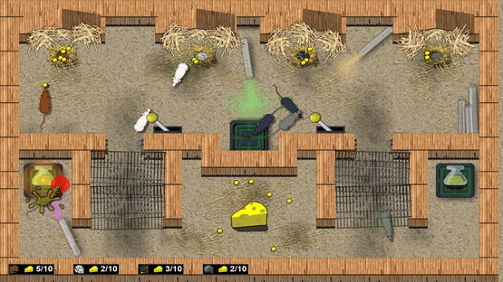 Ratergy is a local multiplayer arena action game. Fill your nest with cheese by using your two rats and put your skills and friendship to the test. Envelop the most cheese-gathering efficient tactics by interacting with game elements such as doors, conveyer belts, bombs and many other power ups.