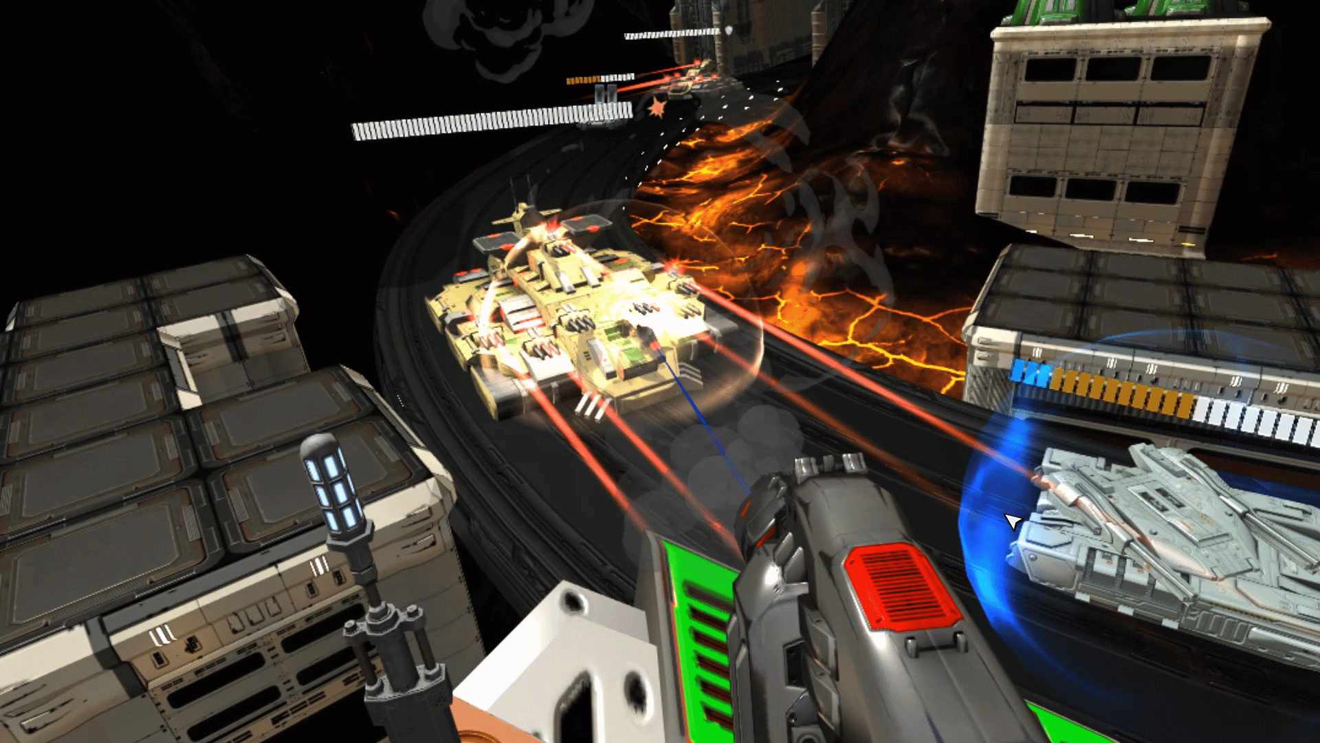 Jump into the fray with Onslaught VR! Armed with multiple gun types, devastating AOE attacks, and aerial capabilities, you'll face off against multiple enemies and powerful commanders. Good luck, soldier... you'll need it.