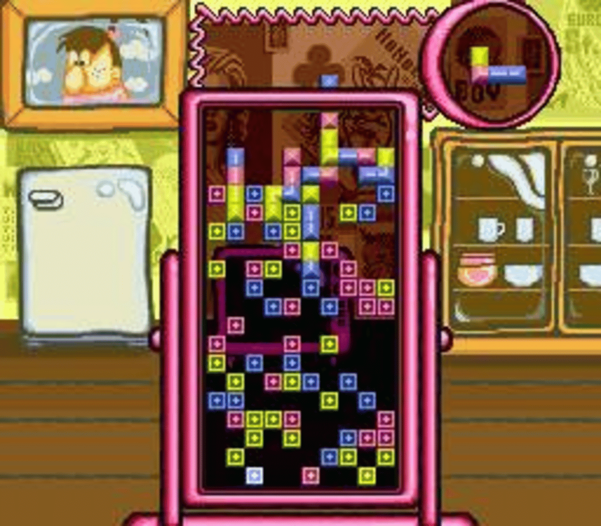 SNES release of "Tetris 2". The mesmerizing fun of Tetris returns - and the challenge escalates to new heights! Test your dexterity, tease your brain and rack up points with Tetris 2. Your split-second decisions lead you to a new dimension in puzzle-solving action! Play alone or challenge a friend in simultaneous split-screen action. A tougher Tetris with more shapes, more components, 30 levels - and unlimited solutions! If you loved the international game sensation Tetris, you'll be wild for the newest dimension in puzzle fun: Tetris 2!