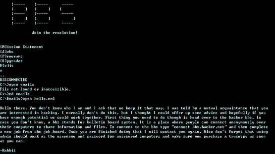Retro Hacker simulates hacking from a computer terminal with a text based operating system.