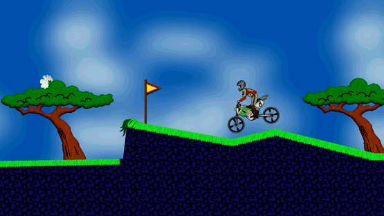Elasto Mania (also known as Elma) is a physics-simulation game released in 2000. It claims to be "based on a real physical model." It explores the notion of elastic motorcycles. The goal of each level is to collect every apple (disappearing by contact) spread throughout it, and then to touch the flower (the exit object). Some people, especially the ones part of online groups such as Mopolauta, play the game trying to finish levels as fast as possible, while others, mostly quite-new-to-the-game players, simply concern themselves with the accomplishment of levels, often first requiring figuring out a way for them to be solved. Ultimately, though, experienced players are motivated by the objective of finishing levels in the least amount of time possible, trying either to settle down personal, or world, records. That contributes to setting the stage for serious competition, especially in the official game levels.