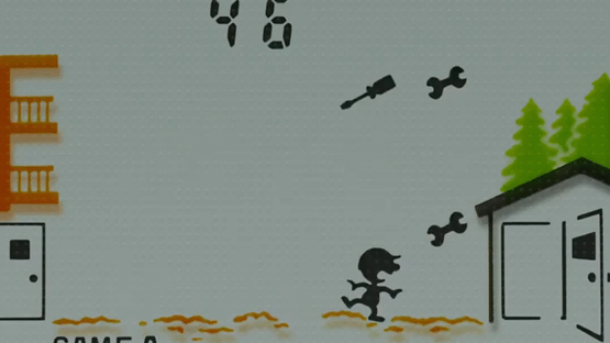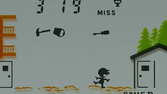 Helmet is a Game & Watch game that was released in 1981. In the game, you have to run from one house to the house across from it without getting hit by falling tools that your enemies is throwing at you. Sometimes the door on the other house will close, making you run around until it opens.