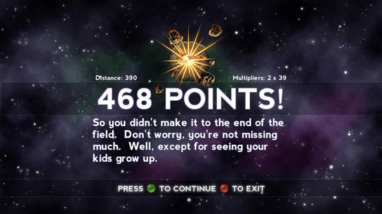 "Out beyond the edge of the universe. Far past any celestial wilderness you could hope to imagine, lies a vast ocean of impenetrable rock...". Test your piloting skills in this addictive one button action game. With 4 different modes ranging from Classic to Double Rainbow. The odds of surviving this game are 3720 to 1. Have you got the minerals?