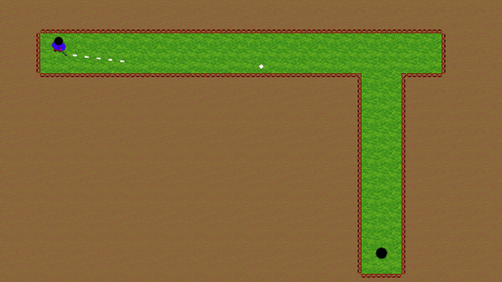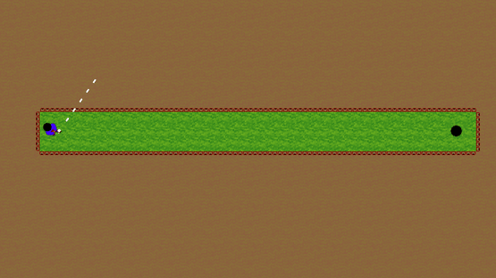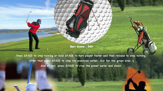 In this game you play miniature golf just with one button. You aim, set precision and power of the shot only using the space bar at your keyboard. After starting a course, your player is rotating clockwise. Press space to set the direction. Now the precision meter becomes active, press space when the green spot is highlighted. Finally, the power meter becomes active, setting the power of the shot. Once you press space here you release the ball. Repeat this until you put the ball in and the new course will load. All in all, there are 18 courses in the game.
