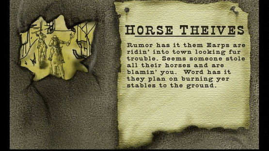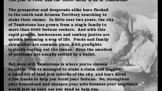 A budget priced RTS set in the wild west. Players choose a side in the famous Earp/Clanton feud and set about harvesting wood and mining silver to construct the buildings and hire the fighters needed to defeat the other. There are approximately 20 total scenarios (although all take place on the exact same map) with each side having access to the same six types of buildings and five types of units.
