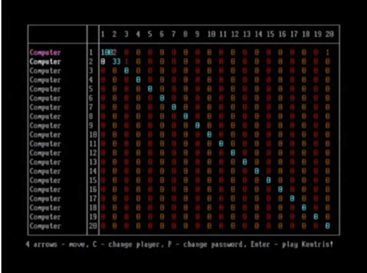 Kentris is a Freeware Tetris clone made by build engine creator Ken Silverman. As usual for a Tetris game, you rotate and move falling blocks of various shapes so as to arrange them into complete lines without gaps. A few amusing sound effects are added by Silverman.