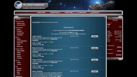 Planetarion is a browser-based massively multiplayer online game created by Fifth Season AS in early 2000. The game places players in control of a planet, with the ability to mine its asteroids for resources, enabling them to construct a fleet of spaceships to attack other players' planets. Although its popularity has declined with the emergence of other similar games and the introduction of a pay-to-play model, which has since been changed to a freemium format, the game is currently still active, and as such is one of the oldest running internet games of its genre.