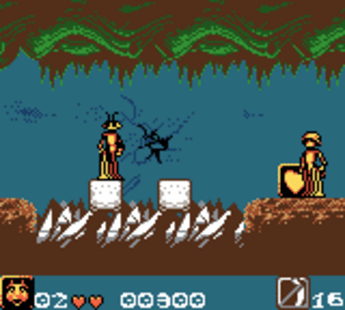 Antz is a side-scrolling platformer based on the movie of the same name. You take the role of Z, and you set out to win the heart of Princess Bala. Each of the 19 levels is based on situations in the movie. Your character has a variety of actions: crouching down, going through tunnels, hiding from enemies, jumping over obstacles, hanging from trees, climbing ropes and more. You also encounter boss characters.