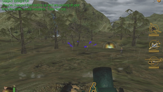 You're trapped behind enemy lines, and must hold out 'til the bitter end. You've called in ground and air support but will it get to you in time? Arm yourself for non-stop action through 60 heart-pounding missions. Call in howitzer bombardments and napalm strikes to immobilize the enemy in a sea of flames. Prepare for an all-out firefight against a raging onslaught of enemy troops, tanks and artillery storms. Survive Viet Cong ambushes using your pistol, M-16 rifle, mini-gun or mortar. Your survival depends on ammo drops from UH1 helicopters-watch their backs or lose your lifeline.