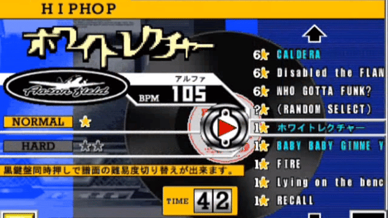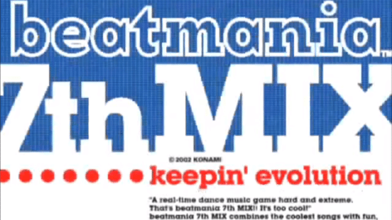 beatmania 7thMIX is a rhythm game developed by Konami. It is the twelfth game in the beatmania series and is part of the BEMANI franchise. The game is played with a controller with one turn table and 5 keys, three white and two black. On the screen you will see bars moving from the top to bottom in columns representing each of the keys and the turntable. When the bars reach the judgement line it is time to scratch. 7thMIX allow the player to have separate lanes for the two black keys. Instead of in between the lanes of the white keys. This makes the lanes much closer to the beatmania IIDX series. 1-Turn scratches are introduces, where you need to turn the turntable exactly once to get the best score. MANIAC has been renamed back to ANOTHER again. All singles and double charts has been re-rated and for the first time in the series the rate for the single chart and the double chart are rated separately. The game has 27 songs returning from 6thMIX and introduced an additional 32 songs for a total of 59 songs.