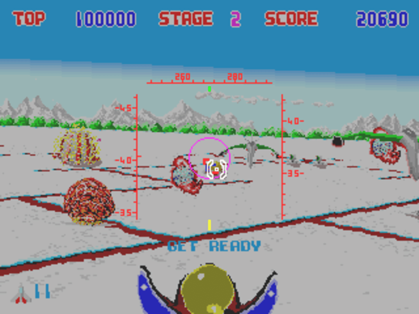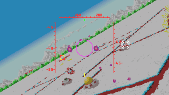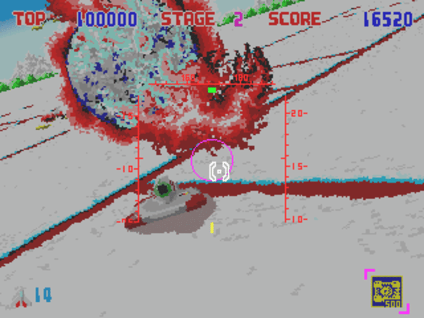 Lock-On is a 1986 first-person combat flight simulator video game with a futuristic theme. It was developed by Tatsumi and licensed to Data East for US distribution. Its graphics feature scaling sprites and a full-screen rotation effect. The game consists of 20 levels. Gameplay is similar to After Burner: the plane follows a predefined path, but the player can steer it slightly to evade incoming missiles. The player can fire guns and homing missiles, the latter of which requires the eponymous lock-on first.