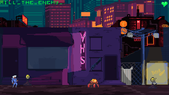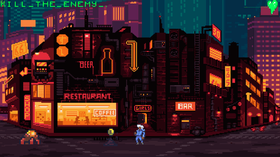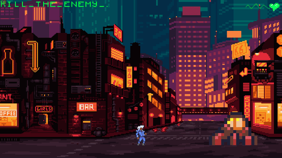 Cyber Fight is an old-school pixel platformer with nice electronic music, made in the style of urban steampunk. In order to get to the next level you need to destroy all enemies.