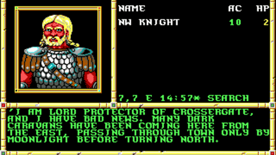 Neverwinter Nights is a computer game released in 1991. It was developed by Stormfront Studios and published by Strategic Simulations, Inc. and ran on MS-DOS. It was the first multiplayer online role-playing game to display graphics, and was hosted on AOL. Neverwinter Nights was developed with gameplay similar to other games in the Gold Box series. Players begin by creating a character. After creating the character, gameplay takes place on a screen that displays text interactions, the names and current status of one's party of characters, and a window which displays images of geography marked with various pictures of characters or events. When combat occurs, gameplay switches to full-screen combat mode, in which a player's characters and enemies are represented by icons which move around in the course of battle. Situated in the city of Neverwinter and more than twenty surrounding regions/areas, the game itself was similar to other official AD&D Forgotten Realms games of its time. As it was an online game, it had several additional menus for online purposes, as well as features unknown to standard AD&D games of the time, such as the ability to teleport from one region/area to another.
