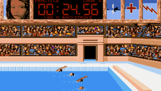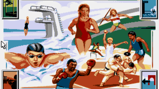 The 1992 Olympic Games took place in Barcelona, Spain, and the corresponding computer game came from Ocean: The Games '92 - España. The Games '92 is divided in three parts: During preparation time, manage and train twelve athletes by sentencing them to gym time and daily practice. Game time advances with each action until the olympic games begin. In practice, heats and finals, you take control of your athletes and drive them to peak performances through rhythmical tapping of the cursor keys, and the occasional press of the space bar. In the database section, you can read up on previous games and winning athletes, and take a look at Barcelona location maps.