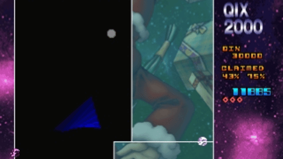 Qix 2000 offers both a perfectly-translated version of the original and the insanely fun arrangement version, which updates the graphics (giving the Qix itself a Tempest X3-style psychedelic flair) and adds a few power-ups to the mix. The speed-up power-up makes even slow draw fast, and fast draw faster, but the speed-down power-up negates that effect - and heaven help you if you hit the latter while already operating at normal speed.