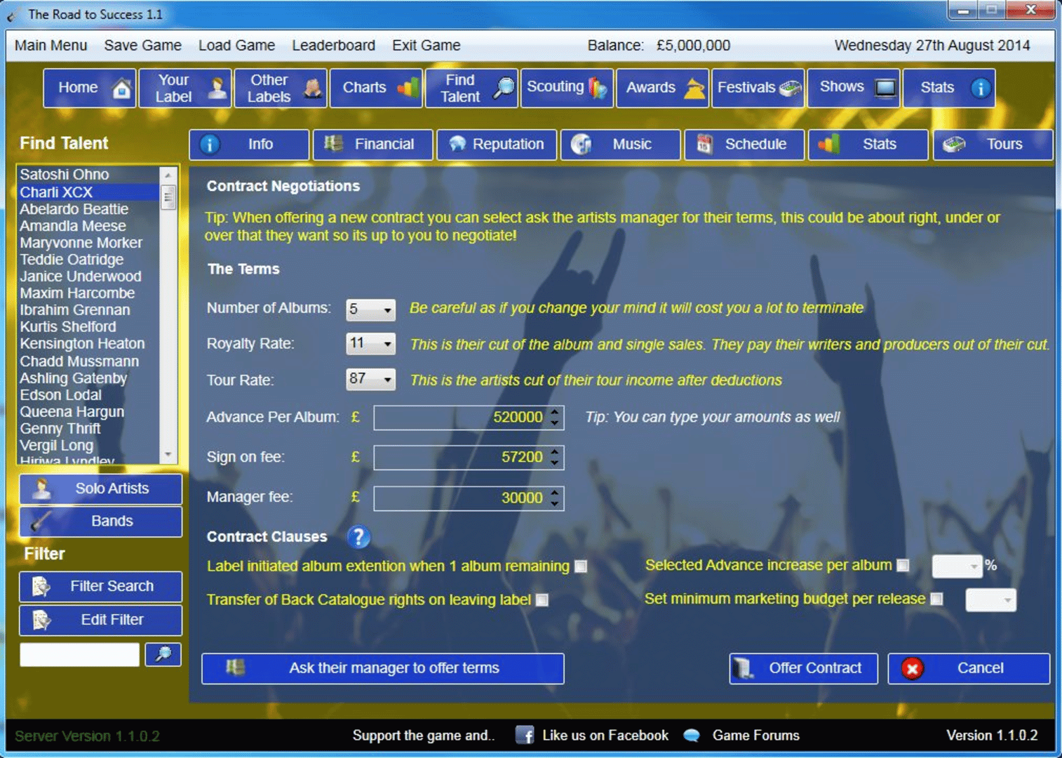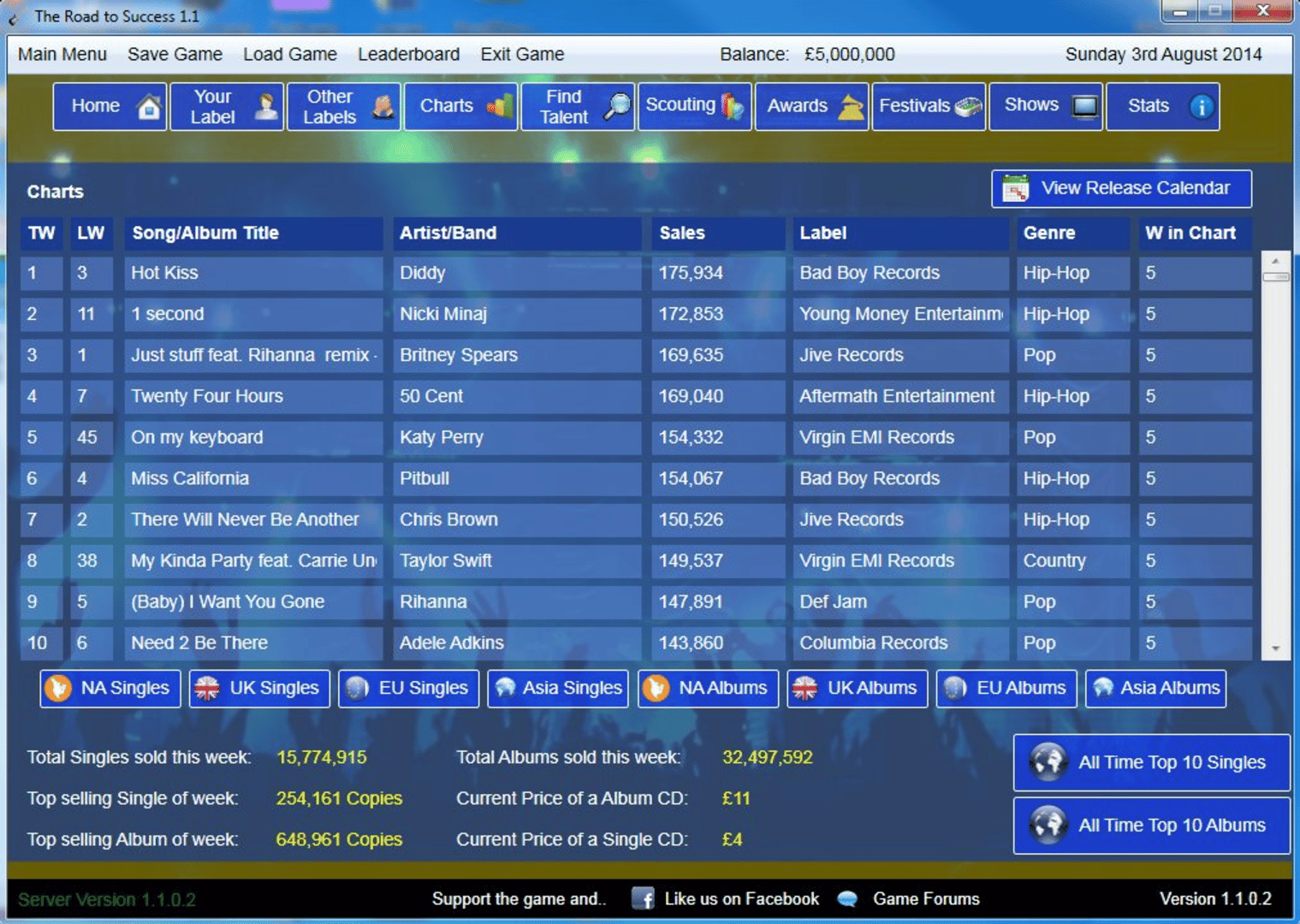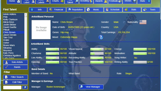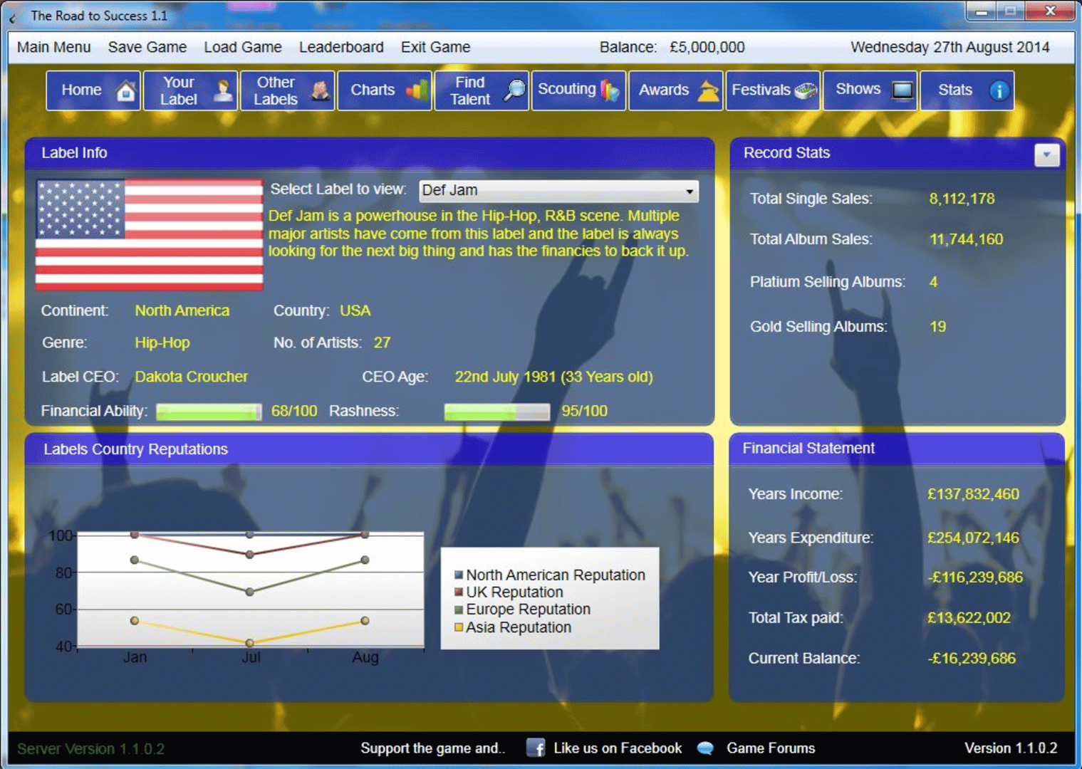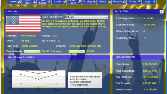 The Road 2 Success is a music label simulation game for PC where it puts you in charge of your own record label where you manage your stable of solo artists or bands.