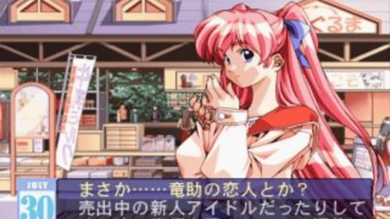 Friends: Seishun no Kagayaki is a Sega Saturn port of an adult visual novel Dousoukai for PC. It was released 3 years after the PC version and has all the adult content removed but is fully voice-acted. This is the first game in the Dousoukai series and starts with you on your way to a nice resort to reunite with some of your classmates from high-school. In particular, your tennis team members. The game focuses on romance and features full map of the place you're staying at as well as the rural town and its surrounding area. The game occurs through one week time and lets you visit any location on the map during both daytime and nighttime, which advances the time. An icon of a character marks when someone is at some location, but not who the person is. This visual novel features typical static anime characters sprites with light animation such as talking animations, pasted over background images. CG event scenes occur with the right character at the right place and time. Your dialogue choices and actions affect how the story progresses and if you will end up with one of the heroines or help with the match-making for your friends.