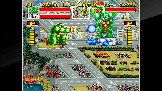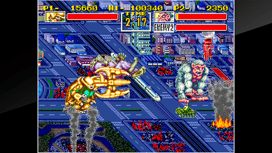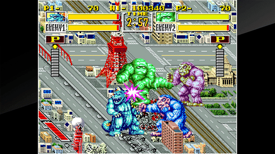 King of the Monsters is an action game released by SNK in 1991. Players choose from one of the six monsters available, and battle their way across Japan in order to claim the title of strongest monster. In addition to normal attacks such as punches and kicks, master more destructive techniques such as flame and beam attacks to overcome the enemies.