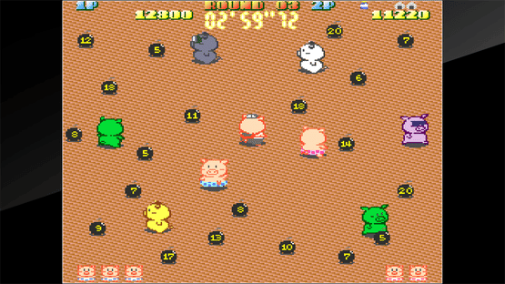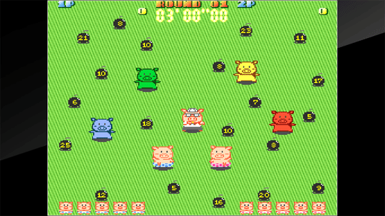 Arcade Archives: Buta san is a port of the action game Butasan. Players try to survive while throwing time bombs at each other. Can you survive the gauntlet of 100 fellow pigs to become the champion Pig? In this title, two players can play together to help or hamper each other.