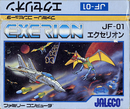 The Famicom port of Exerion is a shoot 'em up game featuring parallax effects and inertia simulation, something notable for 1983. The player travels around strange scenarios shooting aliens. The player has two types of guns: fast single shot (limited) or slow double shot (unlimited).