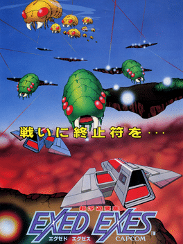 Exed Exes is a basic vertical scrolling shooter; the game scrolls forward, and the player can maneuver their ship around the screen to shoot enemies and avoid attack. POW icons sometimes appear that can power up the ship or turn enemies into fruit that are worth extra points. The game can be played either solo or two-player cooperatively.