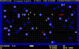 PacWorm is an early Snake-like game for DOS. Your objective is to eat 10 "foods" that appear randomly on the field. Each time you gobble a food, your worm gets longer; if you hit anything except the food (like walls or yourself), you use a life. If you've eaten 10 foods, a door opens and you can leave the level, coming to the next level with additional walls. There is also time limit of sorts: if you'll not eat next food in given time range, it will multiply and counter of "needed food" will go up.