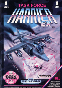 Task Force Harrier EX is a vetically-scrolling shooter based on the 1989 arcade title Task Force Harrier from UPL. The player controls the titular Harrier V fighter plane, which fires both air and ground volleys -- necessary to hit the targets that approach from both the air and the ground. The player can collect various powerups to increase their firepower, including smart bombs, weapon upgrades, and most notably a pair of invulnerable satellites which can change formation at command. There are three difficulty settings and a total of twelve stages to blast through.