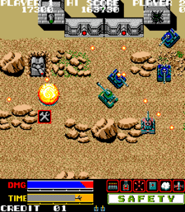 Rampage is a game where players control giant monsters/mutated humans. Players must smash buildings while destroying vehicles such as tanks, planes, and trains to advance to the next level. Smashing windows will sometimes reveals items of interest that the player may use.