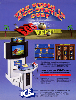 One of the more "kid-friendly" animated gun-shooting games. Players use an optical gun to shoot at the "bad eggs" while avoiding shooting the "good guy eggs". Players advance stage by stage to different levels by shooting a certain number of targets.