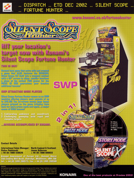 Silent Scope: Fortune Hunter is a rail shooter developed and published by Konami. It is the fifth game in the Silent Scope series, and was released in the year 2002. The cabinet, bundled with Silent Scope EX, also features a Prize Mode where the player can earn real money payouts for performing well in-game.