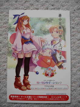 Three button action game released for J-Sky (50KB) devices through the Ulala no Channel J portal and later i-mode 70x devices through the Sonic Cafe portal. The player controls Kii-chan, a rabbit, as they jump to collect ingredients for pastries.